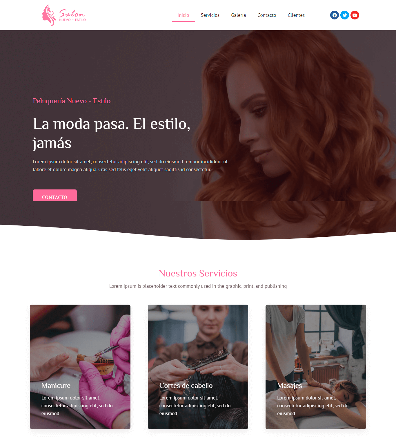Nuestra plantilla web para peluquería es la solución perfecta para cualquier negocio de cuidado del cabello que busque tener una presencia en línea elegante y profesional. Con un diseño moderno y limpio, esta plantilla es fácilmente personalizable y se adapta a cualquier marca.